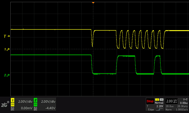 这样的配置顺序在使用 mode0 或 mode1 时没有问题,但是在使用 mode2 或 mode3 时会导致在 SCLK 上出现一个下降的脉冲,该脉冲会被当成一个时钟,进而导致数据错误。