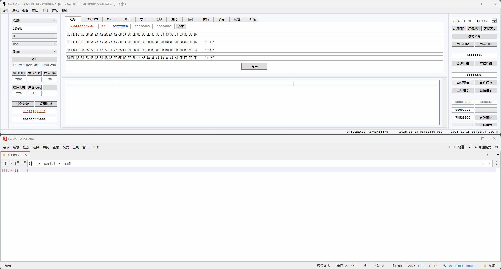 串口(485)默认工作在 DLT645 收帧模式,如果收到 DataId = 0xDBDBDBDB 的设置帧,则切换到控制台交互模式,在控制台中执行 console_disable 命令可以切回 DLT645 收帧模式。